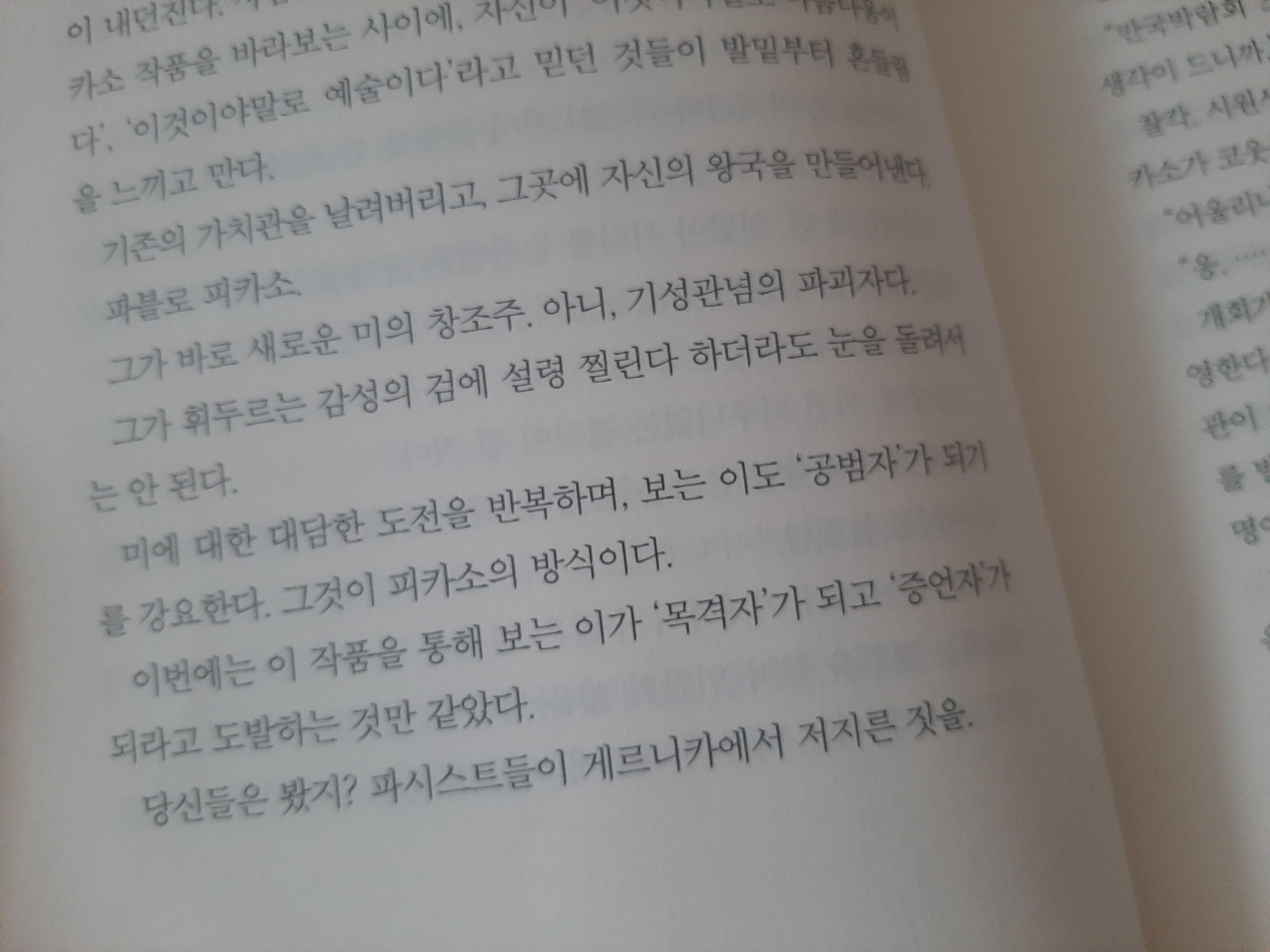 피카소가 스페인 내전 당시 전쟁을 비판하며 그린 작품 게르니카처럼, 그리고 이 책의 저자가 폭력을 이유로 한 폭력을 비판하며 써 내려간 작품 암묵의 게르니카처럼