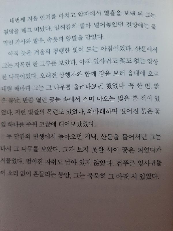 불빛은 자기가 불빛인 것을, 붉은 꽃 속에서 자기가 밝혀져 있던 것을 모른다고 했다.