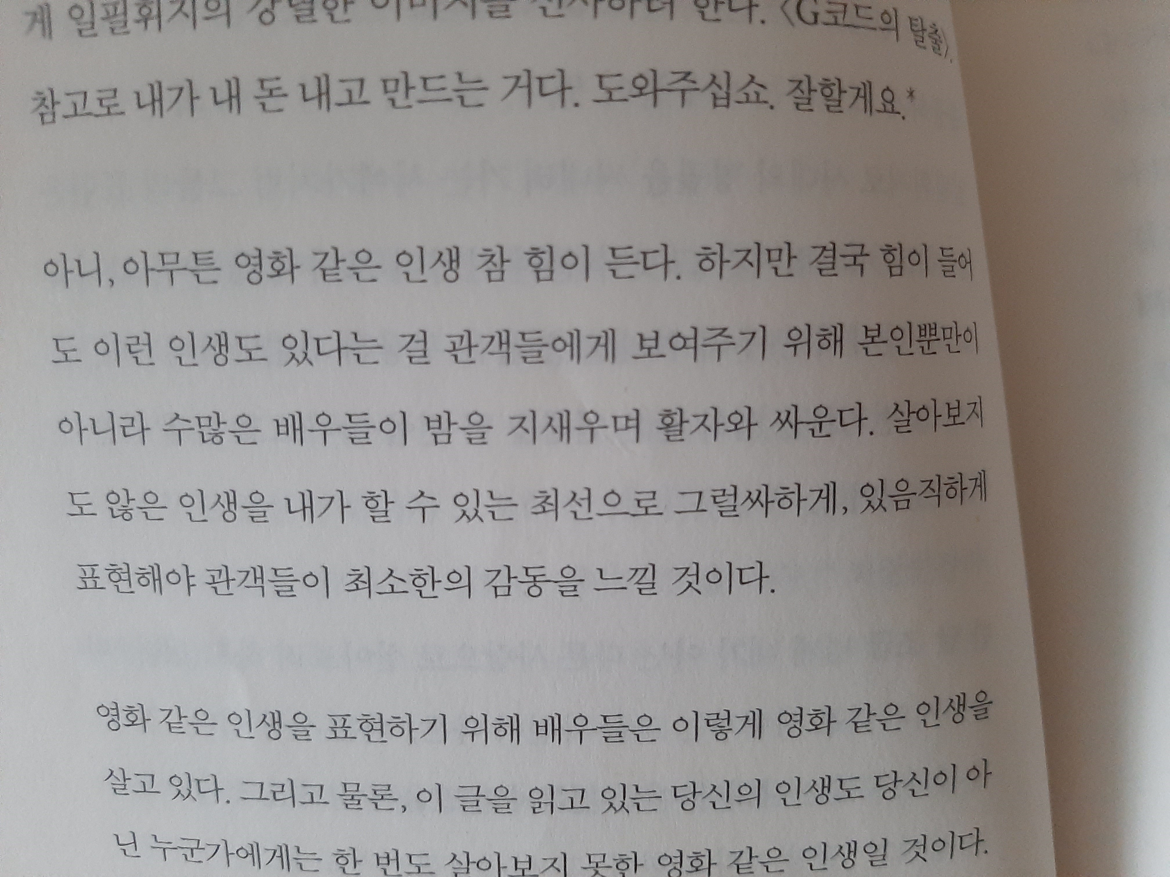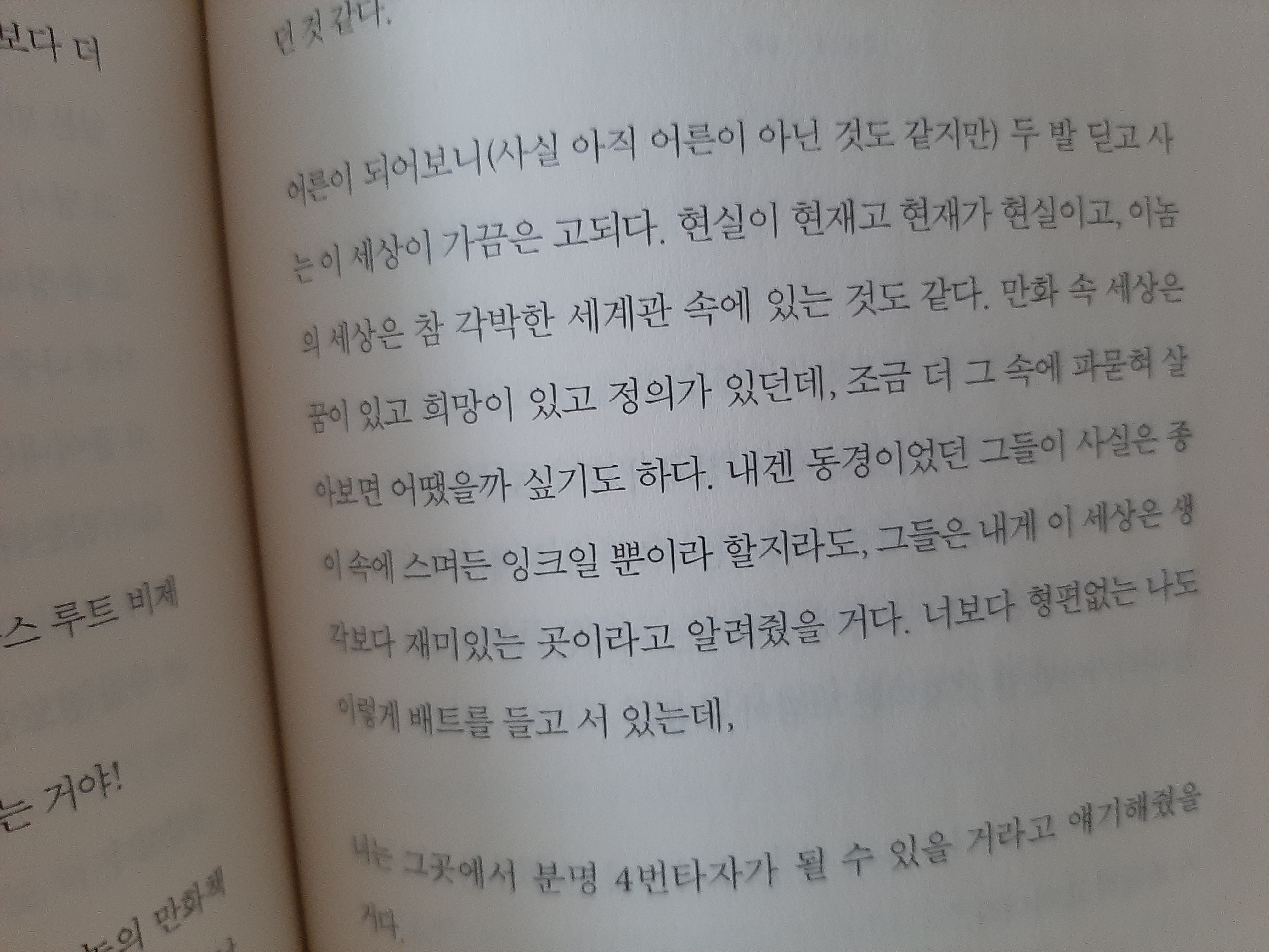 어쨌든. 다시 책 이야기로 돌아와서, 원래 자기계발서와 같이 에세이도 좋아하지 않는데, 재밌었다. 다른 사람이 어떤 생각을 하는지도, 어떠한 관점으로 세상과, 어떤 일을 바라보고 있는 건지도, 어떠한 삶을 사는 건지를, 읽는 것도 꽤 흥미로웠다.